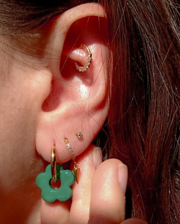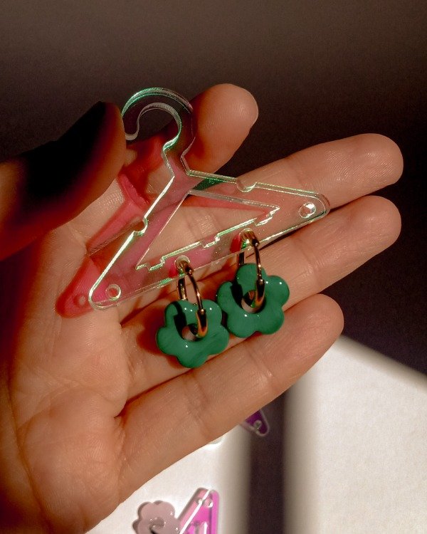 Aritos Argolla de Acero quirúrgico con CHARM FLORCITA de vidrio
