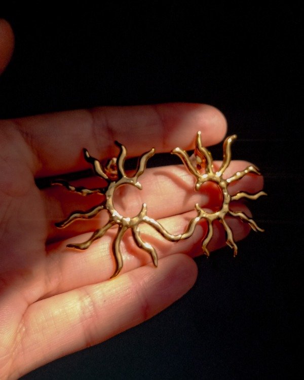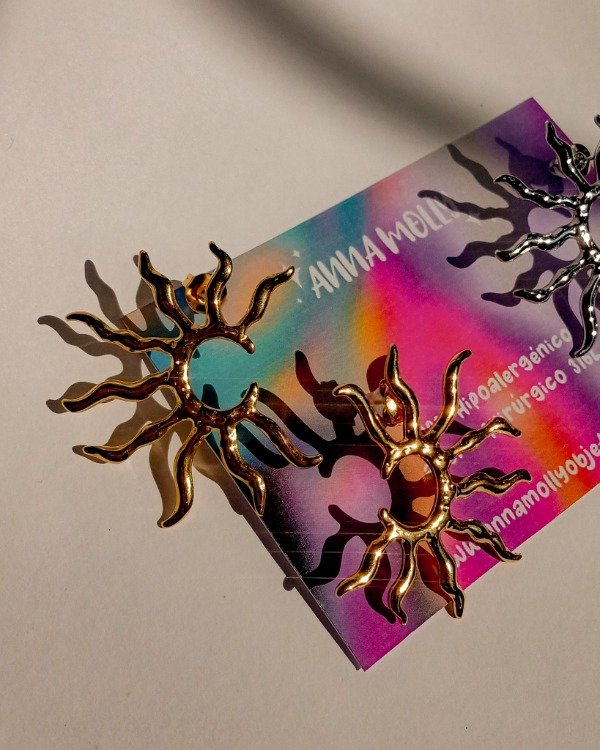 Aros MEDIO SOL de acero quirúrgico 316L con baño de oro 18k