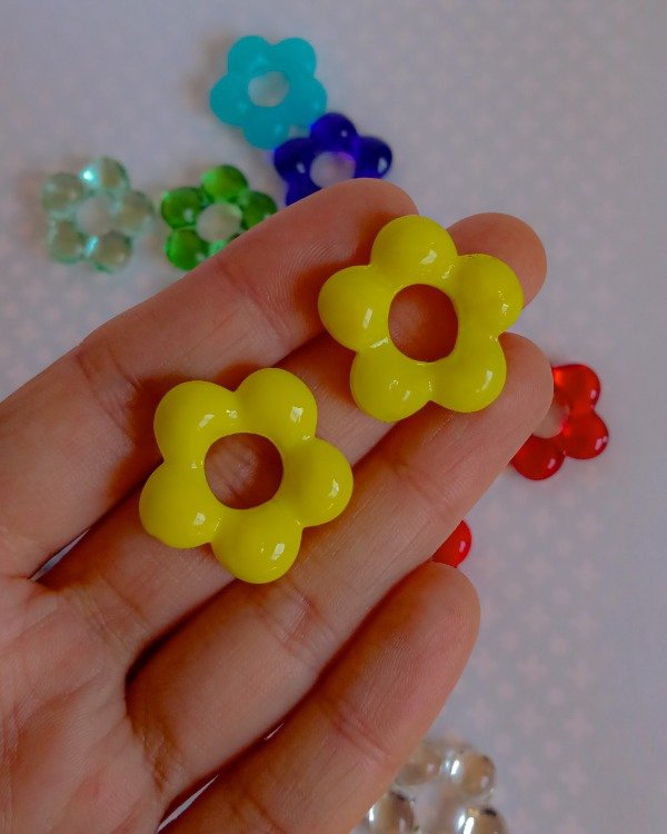 Florcita AMARILLA de vidrio CHUNKY tipo CHARM para Argollitas