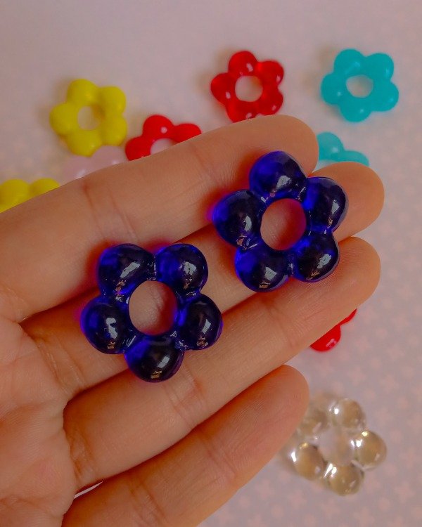 Florcita AZUL de vidrio CHUNKY tipo CHARM para Argollitas