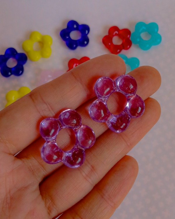 Aritos de Acero quirúrgico con CHARM colgante de FLORCITA DE VIDRIO CHUNKY de 3 cm de diámetro