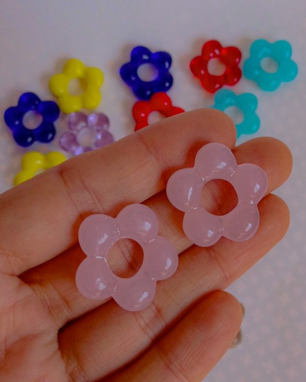 Aritos de Acero quirúrgico con CHARM colgante de FLORCITA DE VIDRIO CHUNKY de 3 cm de diámetro