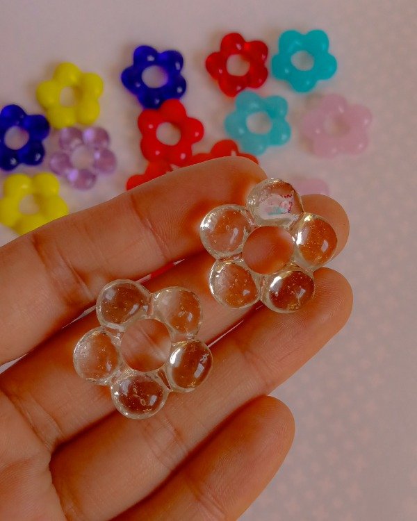 Florcita TRANSPARENTE de vidrio CHUNKY tipo CHARM para Argollitas