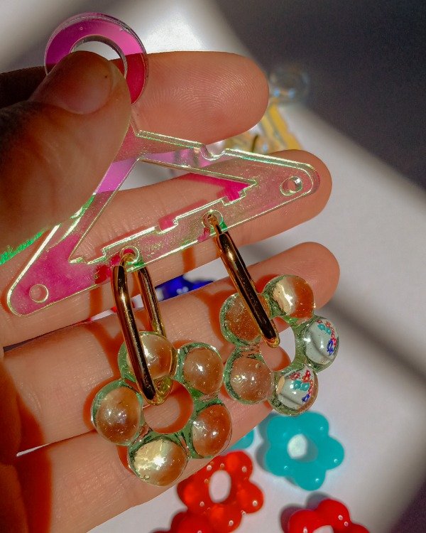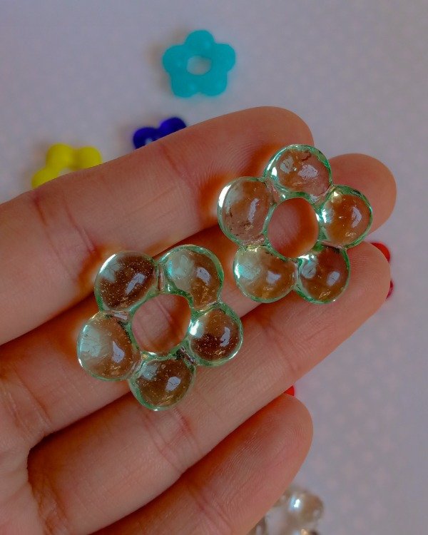 Florcita VERDE AGUA Translúcida de vidrio CHUNKY tipo CHARM para Argollitas
