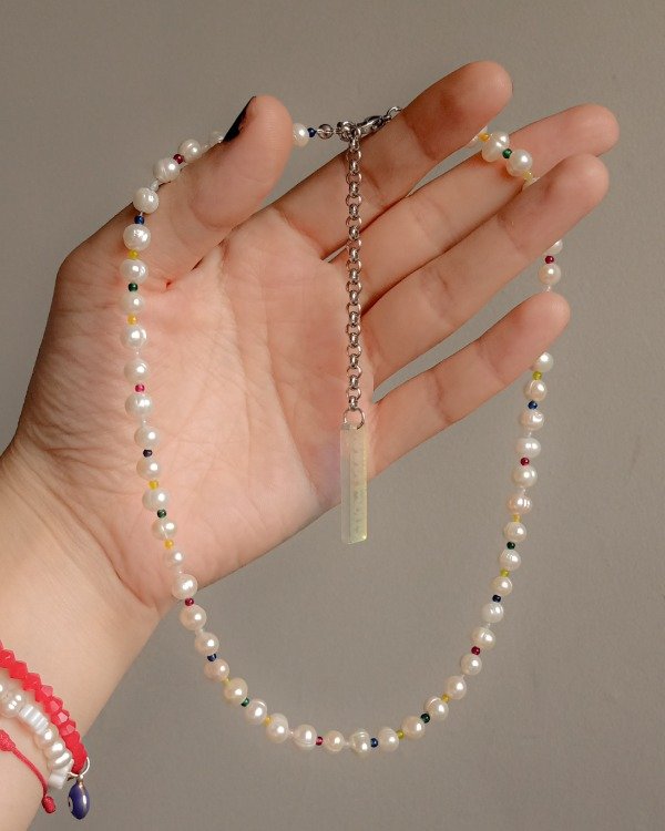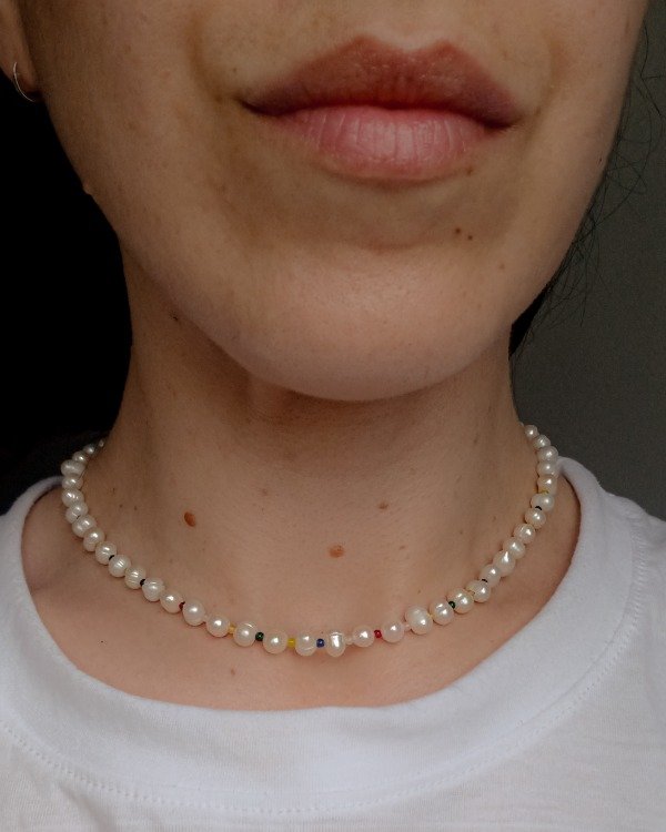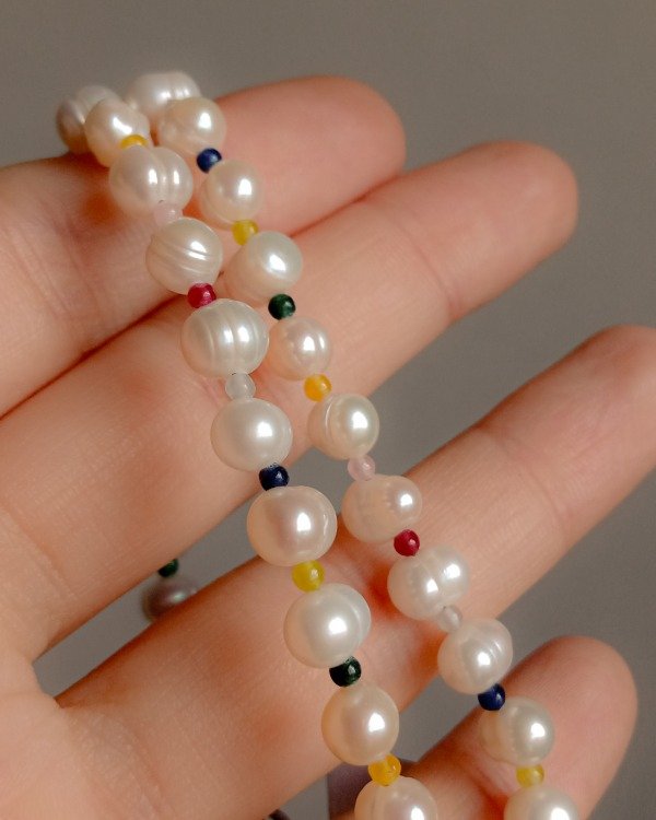 Collar de Perlas de Río de 6mm con separadores de Piedras de Colores