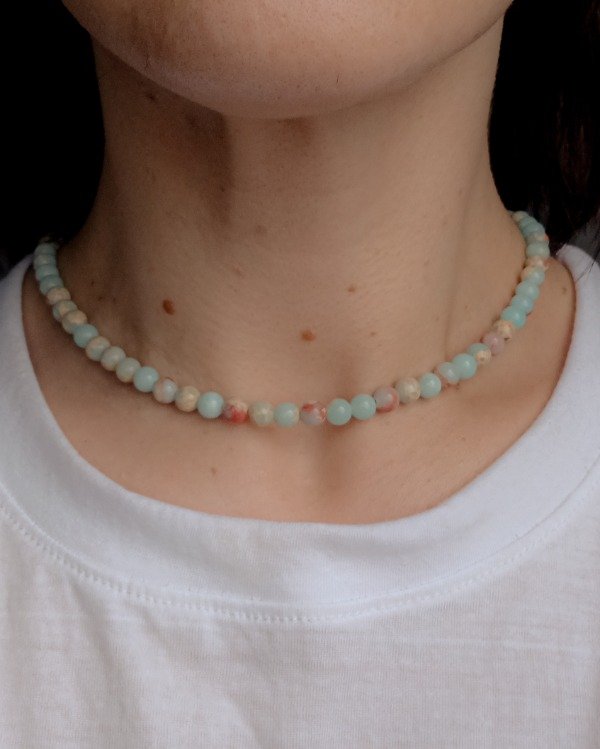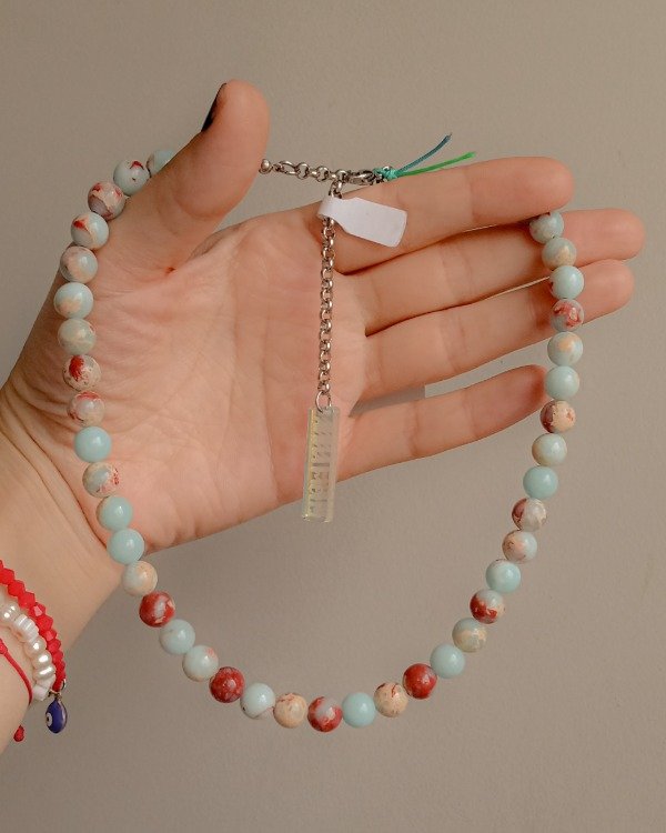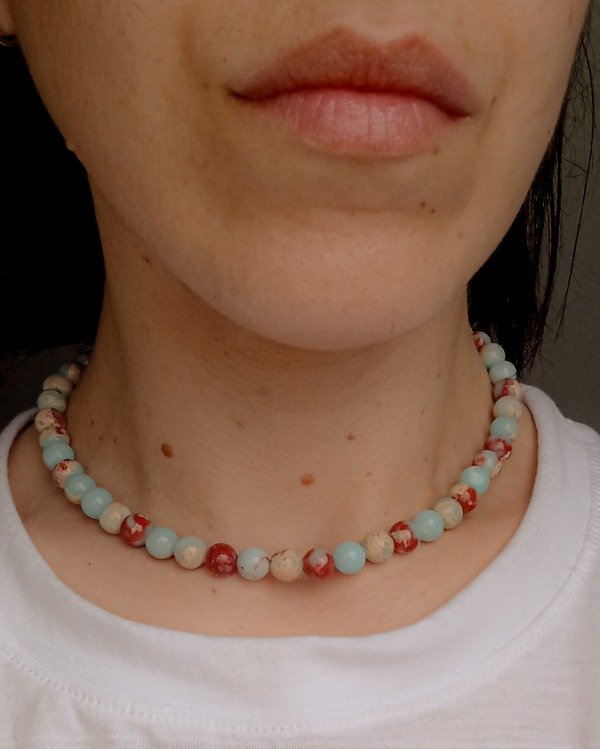 Collar de PIEDRA NATURAL Jaspe Imperial Larimar Celeste