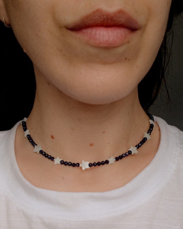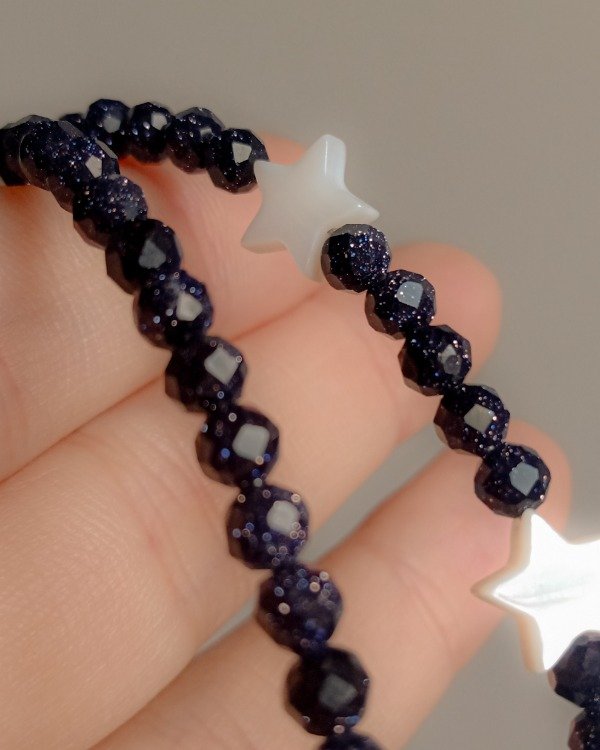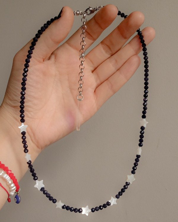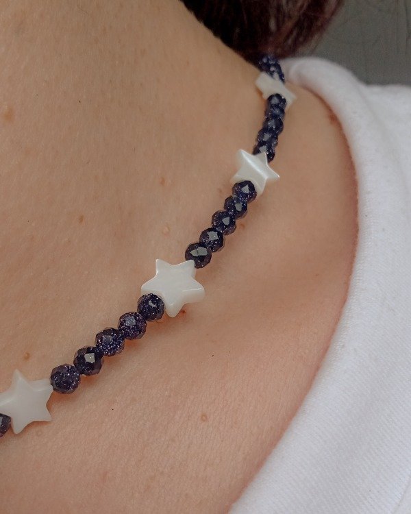 Collar de GOLDSTONE AZUL facetado con ESTRELLAS DE NÁCAR