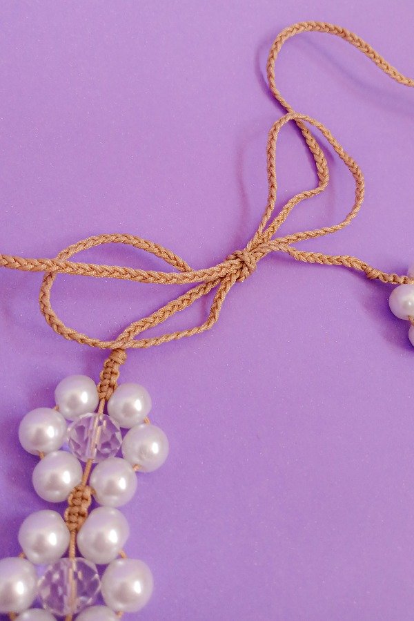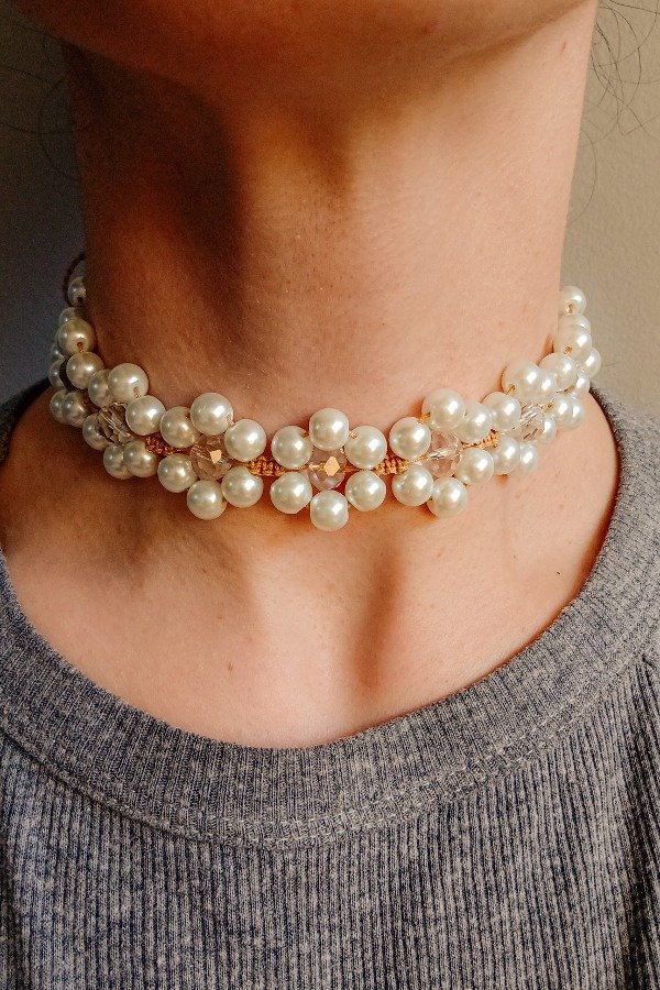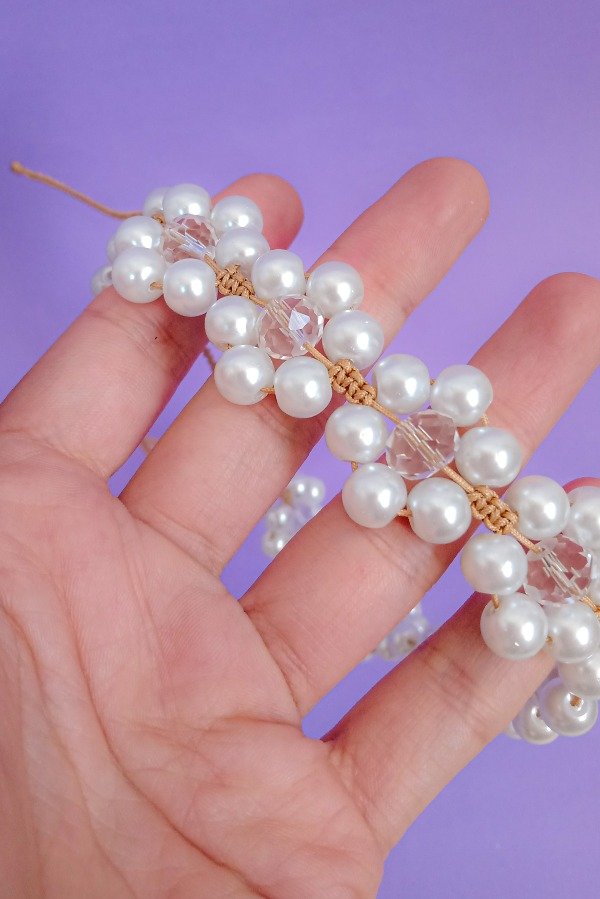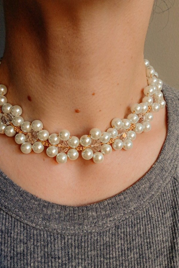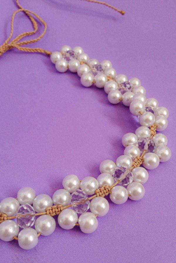 Con HILO CHINO reforzado, PERLAS de Vidrio y Cristales combinados.