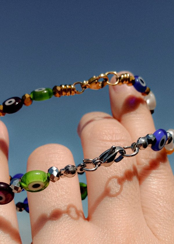 Hecha con amor a base de ojitos turcos de vidrio de colores varios,